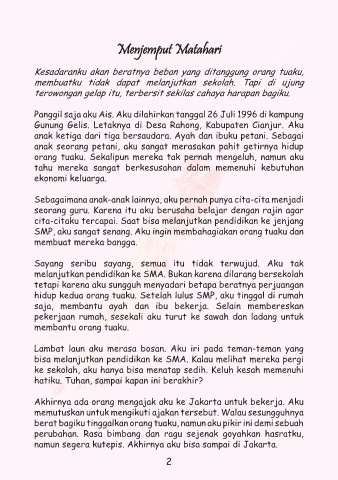 membuatku tidak dapat melanjutkan sekolah. Tapi di ujung