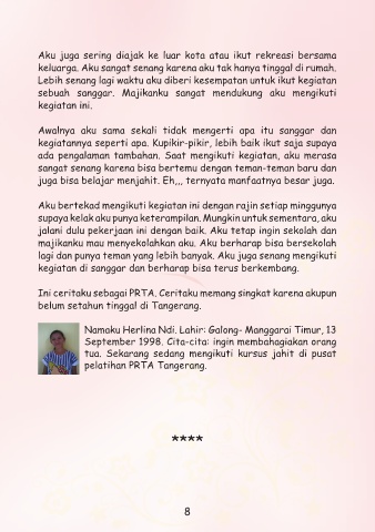 tua. Sekarang sedang mengikuti kursus jahit di pusat