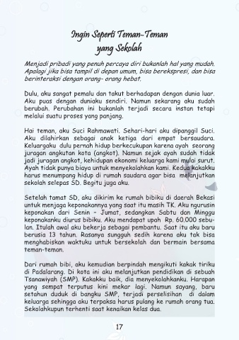 Tsanawiyah (SMP). Kakakku baik, dia menyekolahkanku. Harapan