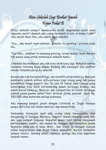 Putus sekolah sempat membuatku sedih. Bagaimana nasib masa