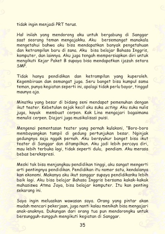 teater di Sanggar dan ditampilkan. Aku jadi lebih percaya diri,