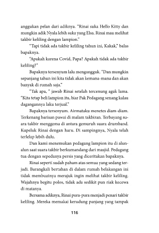 “Tapi tidak ada takbir keliling tahun ini, Kakak,” balas