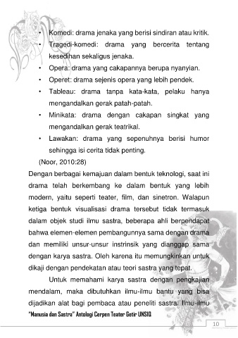 • Komedi: drama jenaka yang berisi sindiran atau kritik.
