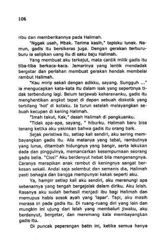 "Imah takut, Kak," desah Halimah di pangkuanku.
