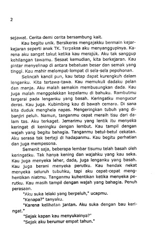 juga malah menggoiekkan kepalamu di bahuku. Rambutmu