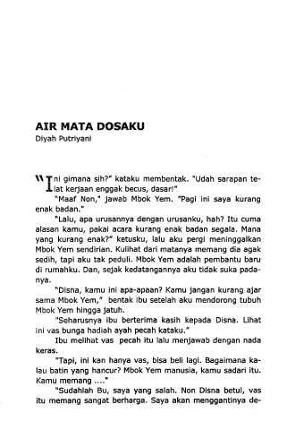 "Maaf Non," jawab Mbok Yem. "Pagi ini saya kurang