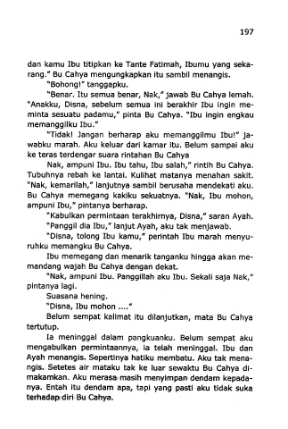 "Benar. Itu semua benar, Nak/' jawab Bu Cahya lemah.