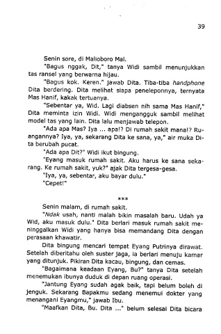Wid, aku masuk duiu." Dita berlari masuk rumah sakit me-