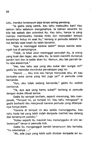 "Hei, kau tahu apa yang aku sukai dari sungai ini?"