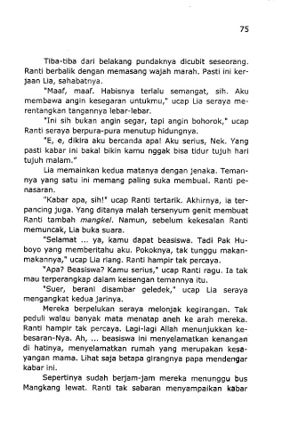 "Kabar apa, sih!" ucap Ranti tertarik. Akhirnya, ia ter-