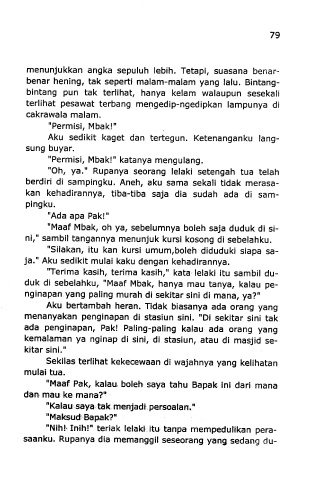 duk di sebelahku, "Maaf Mbak, hanya mau tanya, kalau pe-