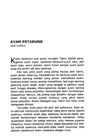 petarung ayam sejati. Ayam yang sengaja ia pelihara sejak
