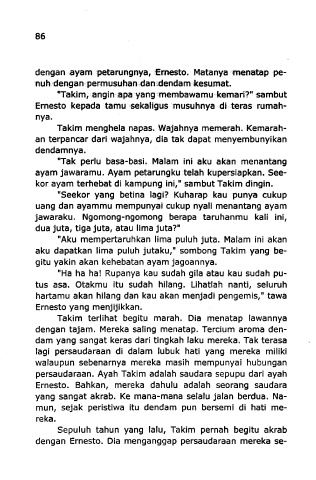 dengan ayam petarungnya, Smesto. Matanya tnenatap pe-