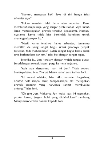 biasanya kamu telat?" tanya Merry teman satu kantor Joni.