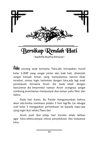 tiara,benar dia berprestasi namun Arum orangnya sangat