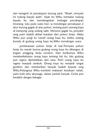 dan mengerti isi percakapan burung pipit. "Waah, ternyata