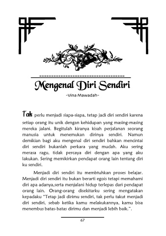 demikian bagi aku mengenal diri sendiri bahkan mencintai