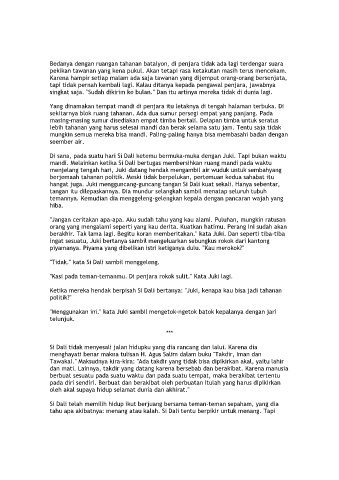Ketika mereka hendak berpisah Si Dali bertanya: "Juki, kenapa kau bisa jadi tahanan