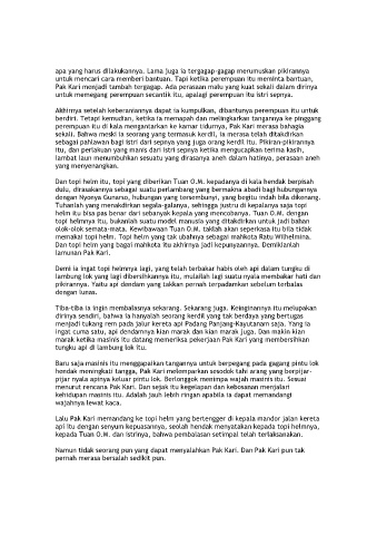 Dan topi helm itu, topi yang diberikan Tuan O.M. kepadanya di kala hendak berpisah