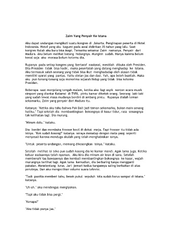 kongres itulah aku baru bisa inapi. Temanku sekamar Zaim namanya. Penyair dari