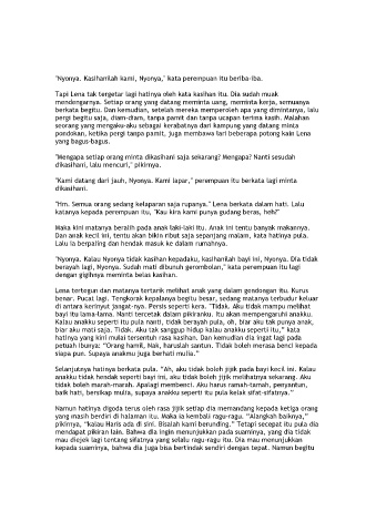 "Nyonya. Kalau Nyonya tidak kasihan kepadaku, kasihanilah bayi ini, Nyonya. Dia tidak