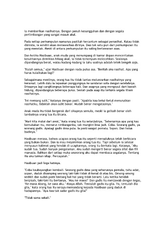 "Itulah semua," ujar Hasibuan dengan nada putus asa. "Berilah aku nasihat. Apa yang