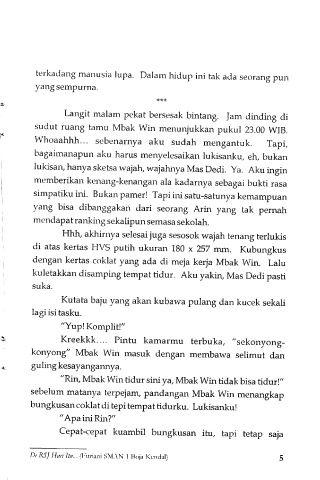 lukisan, hanya sketsa wajah, wajahnya Mas Dedi. Ya. Aku ingin