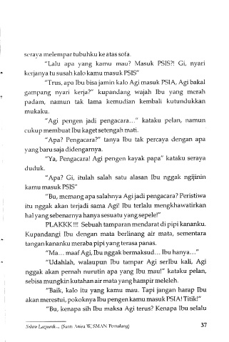 "Trus, apa Ibu bisa jamin kalo Agi masuk PSIA, Agi bakal