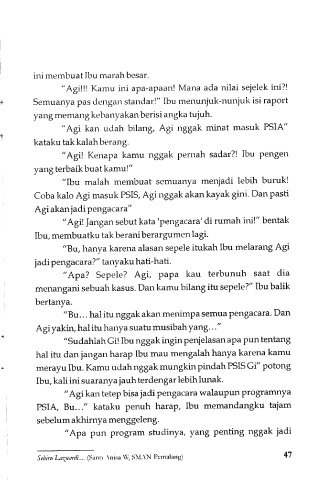 "Bu, hanya karena alasan sepele itukah Ibu melarang Agi