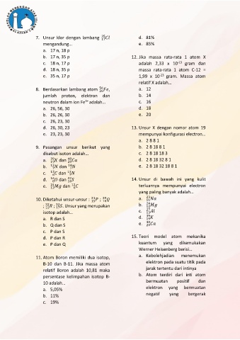 b. 17 n, 35 p 12. Jika massa rata-rata 1 atom X