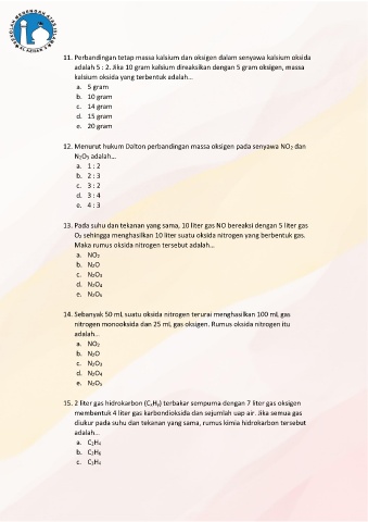 12. Menurut hukum Dalton perbandingan massa oksigen pada senyawa NO2 dan