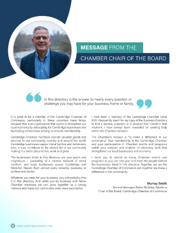services to our community, country and around the world. community.” Your membership in the Cambridge Chamber