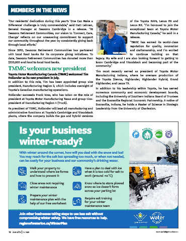 Toyota’s Canadian manufacturing operations. In addition to his leadership within Toyota, he has served