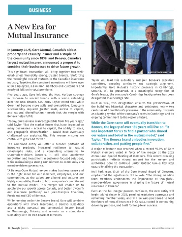 This significant transaction will bring together two well- PHOTO BY GORE MUTUAL