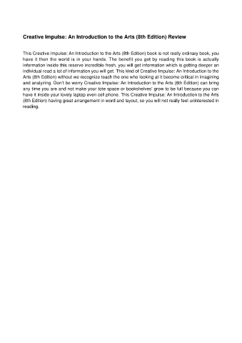 and analyzing. Don’t be worry Creative Impulse: An Introduction to the Arts (8th Edition) can bring