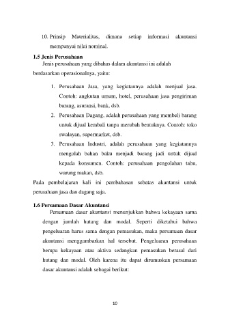 10. Prinsip Materialitas, dimana setiap informasi akuntansi