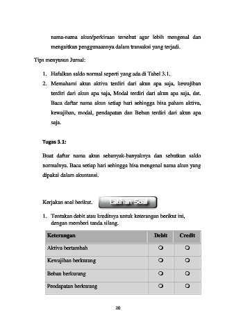 1. Hafalkan saldo normal seperti yang ada di Tabel 3.1.