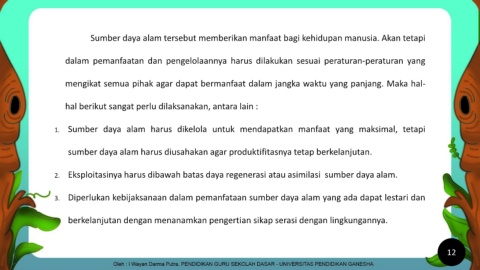1. Sumber daya alam harus dikelola untuk mendapatkan manfaat yang maksimal, tetapi