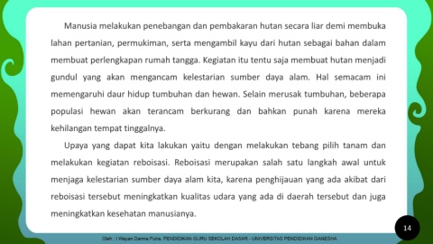 menjaga kelestarian sumber daya alam kita, karena penghijauan yang ada akibat dari