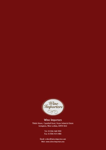 Wine Importers Thistle House, Caputhall Road, Deans Industrial Estate Livingston, West Lothian, EH54 8AS Tel: 01506 468 900 Fax: 01506 414 486 Email: orders@wine-importers.net Web: www.wine-importers.net