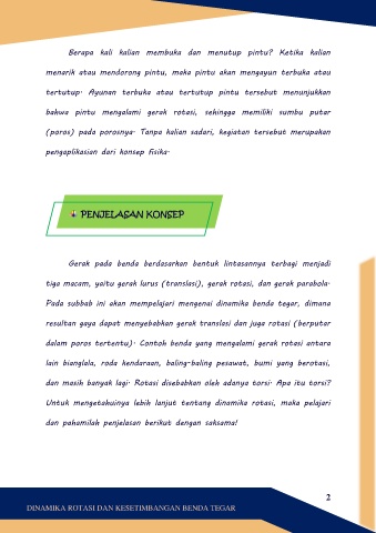 bahwa pintu mengalami gerak rotasi, sehingga memiliki sumbu putar