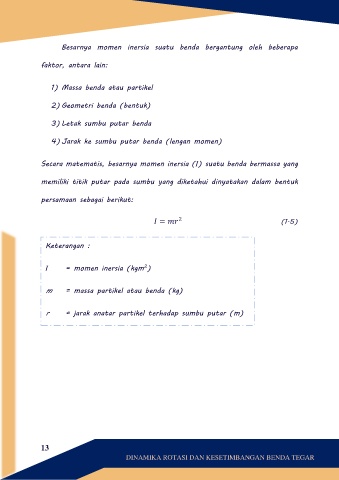 Secara matematis, besarnya momen inersia (I) suatu benda bermassa yang