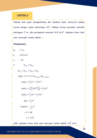 Jadi, kelajuan linear bola saat mencapai tanah adalah 7ξ2 m/s.