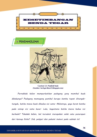 tengah, ketika massa buah dikedua sisi sama. Akibatnya, gaya berat bambu