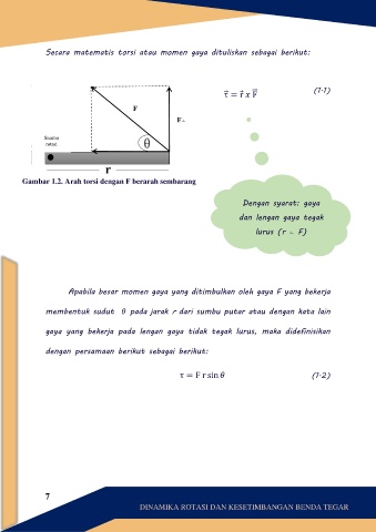 Secara matematis torsi atau momen gaya dituliskan sebagai berikut: