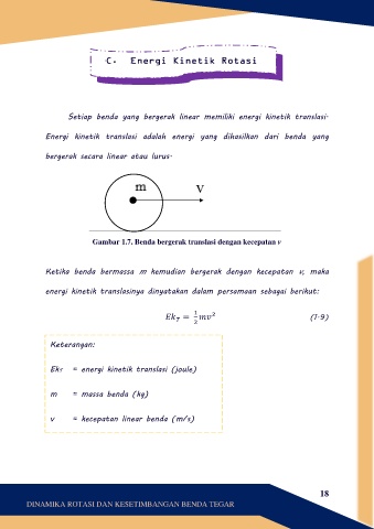 energi kinetik translasinya dinyatakan dalam persamaan sebagai berikut: