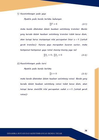 maka benda dikatakan dalam keadaan setimbang translasi. Benda