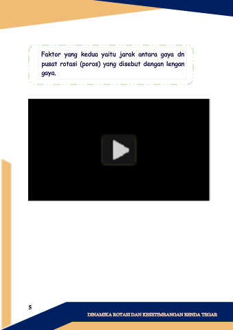Faktor yang kedua yaitu jarak antara gaya dn pusat rotasi (poros) yang disebut dengan lengan gaya. 5 DINAMIKA ROTASI DAN KESETIMBANGAN BENDA TEGAR