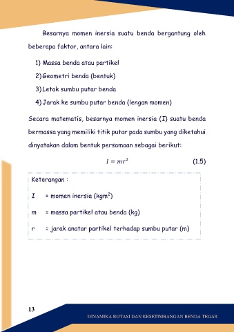 Secara matematis, besarnya momen inersia (I) suatu benda