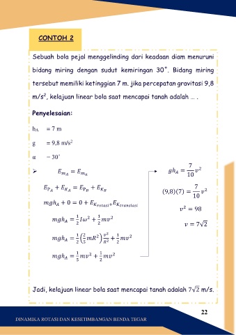 Jadi, kelajuan linear bola saat mencapai tanah adalah 7ξ2 m/s.